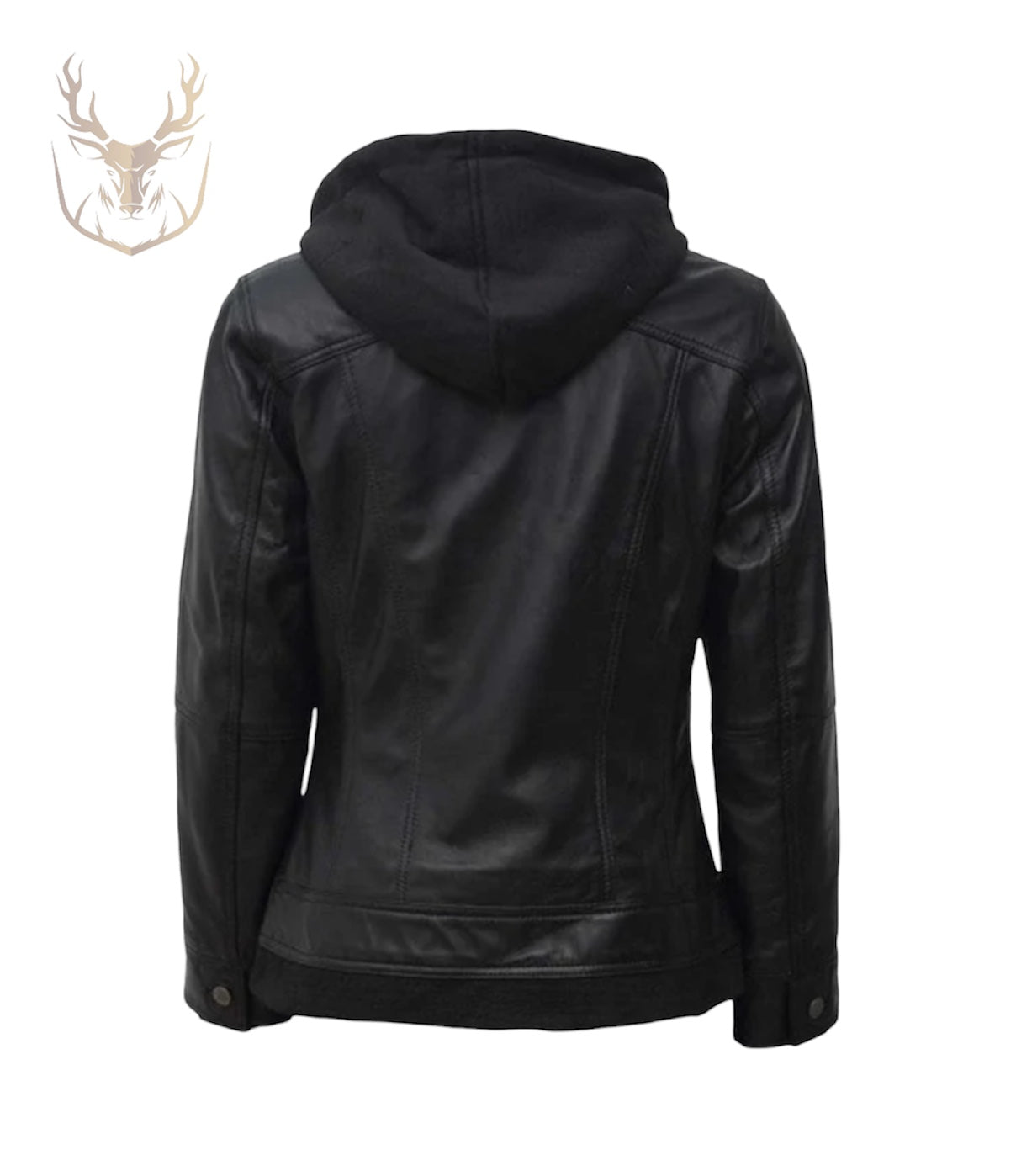LuxeAura’s Black Leather Jacket With Hood For Women.