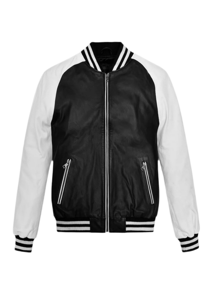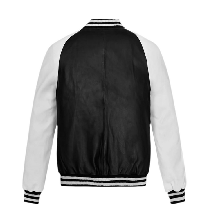 The CREED Bomber Jacket is LuxeAura’s bold reimagining of a classic American icon. Crafted from premium leather in a striking black and white contrast, it blends heritage Bomber styling with modern luxury. Featuring striped rib-knit trims, a polished YKK zipper, and a sharp athletic cut, CREED is designed for those who carry confidence and pride in their style.