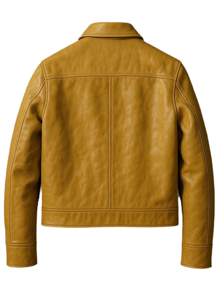 The LUNA Jacket brings LuxeAura’s touch of sophistication to a timeless classic. Crafted from premium Sheepskin leather, this mustard-colored piece stands out with its front button closure, structured tailoring, and sleek feminine silhouette. LUNA combines vintage charm with modern elegance, making it a versatile wardrobe essential for women who want bold color and lasting craftsmanship.