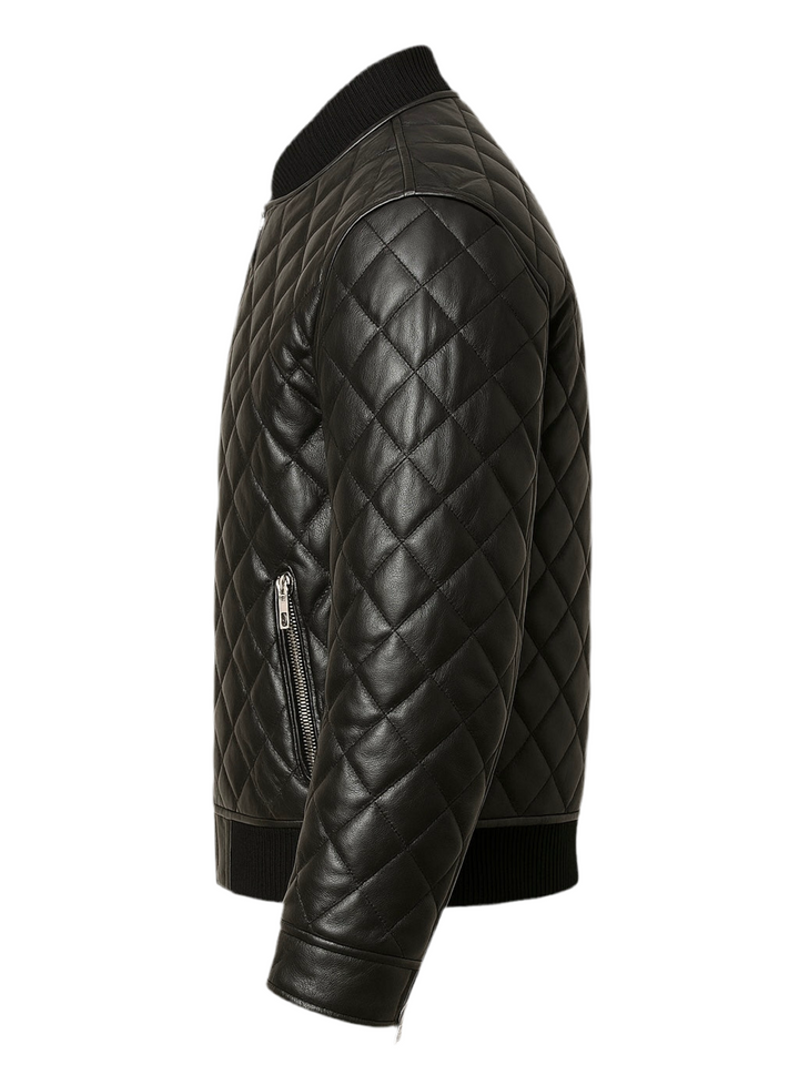 The QUILL Bomber Jacket is LuxeAura’s refined twist on the classic bomber. Made from premium Sheepskin leather, it features a distinctive quilted pattern across the body, paired with rib-knit cuffs and hem for comfort and fit. Sleek, structured, and versatile, QUILL is designed for men who want a bomber that combines timeless street style with luxury craftsmanship.
