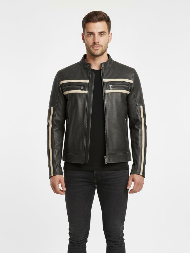 SPAR – Vintage Striped Racer Leather Jacket